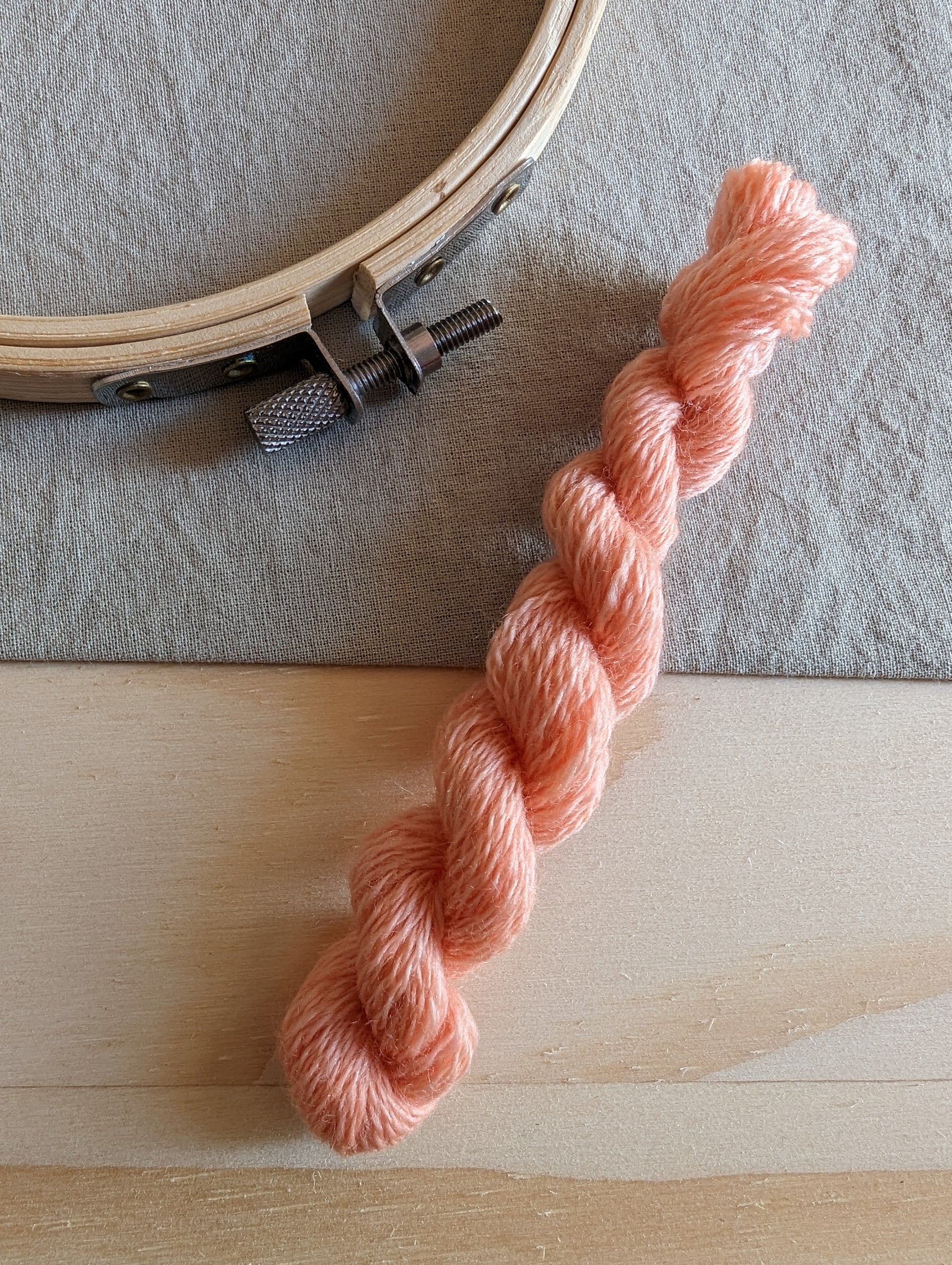 Ce fil à broder, très solide, est une laine d’agneau de très grande qualité peignée et filée dans le nord de l’Italie. Il est teint à la main avec des plantes, ici dans notre atelier de teinture en Isère. Il possède une brillance exceptionnelle pour un fil 100% laine.