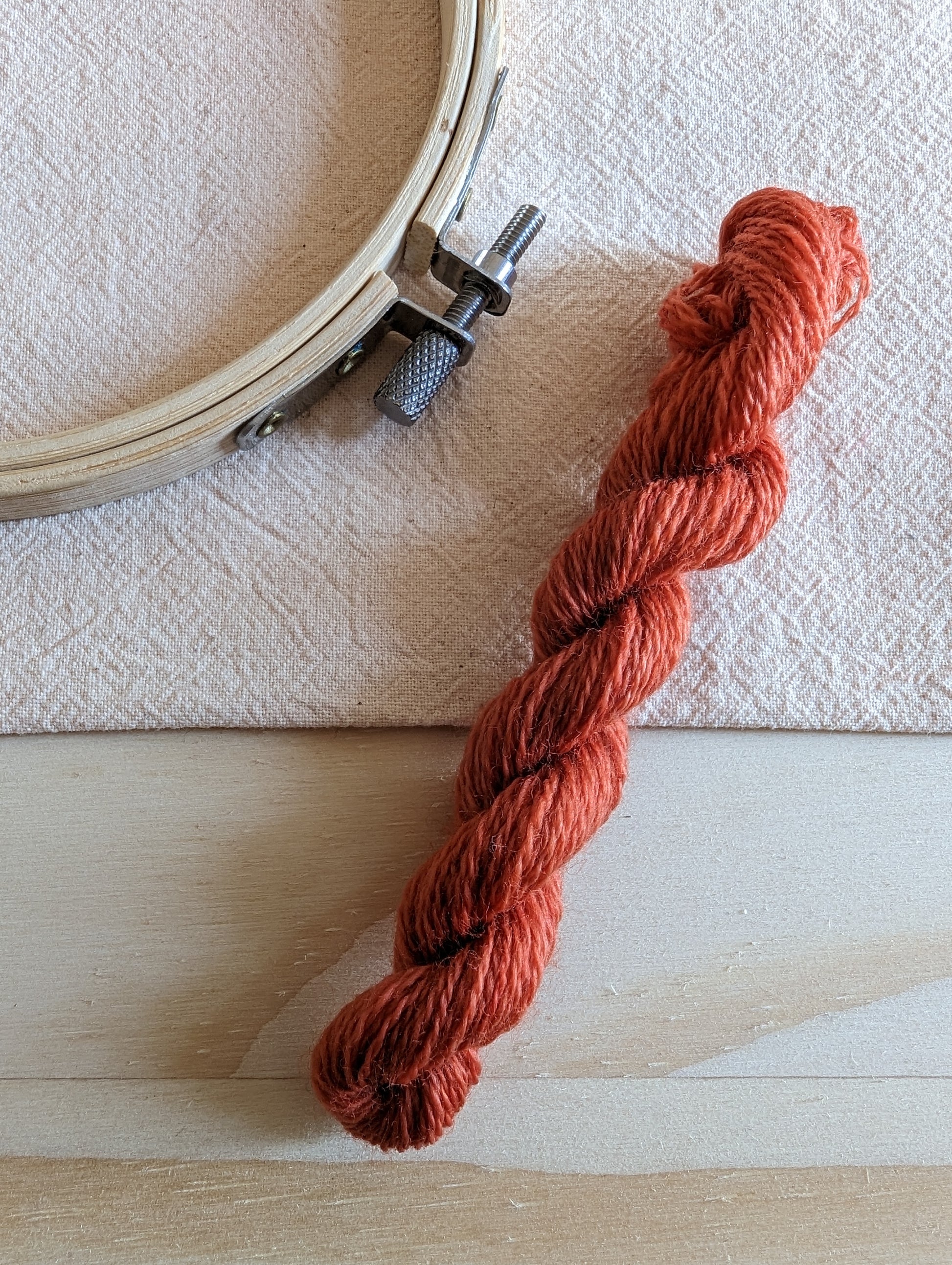Ce fil à broder, très solide, est une laine d’agneau de très grande qualité peignée et filée dans le nord de l’Italie. Il est teint à la main avec des plantes, ici dans notre atelier de teinture en Isère. Il possède une brillance exceptionnelle pour un fil 100% laine.