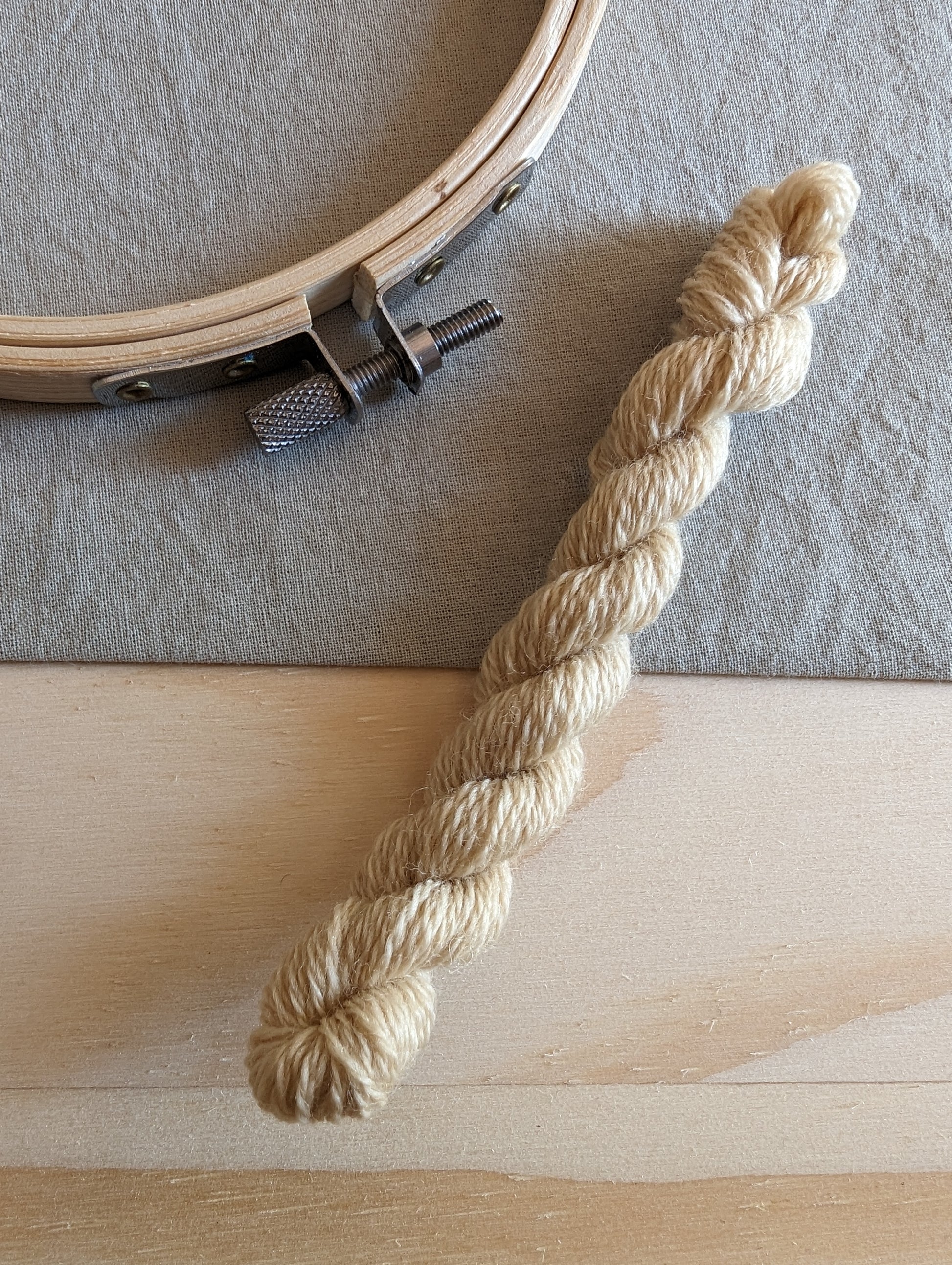 Ce fil à broder, très solide, est une laine d’agneau de très grande qualité peignée et filée dans le nord de l’Italie. Il est teint à la main avec des plantes, ici dans notre atelier de teinture en Isère. Il possède une brillance exceptionnelle pour un fil 100% laine.