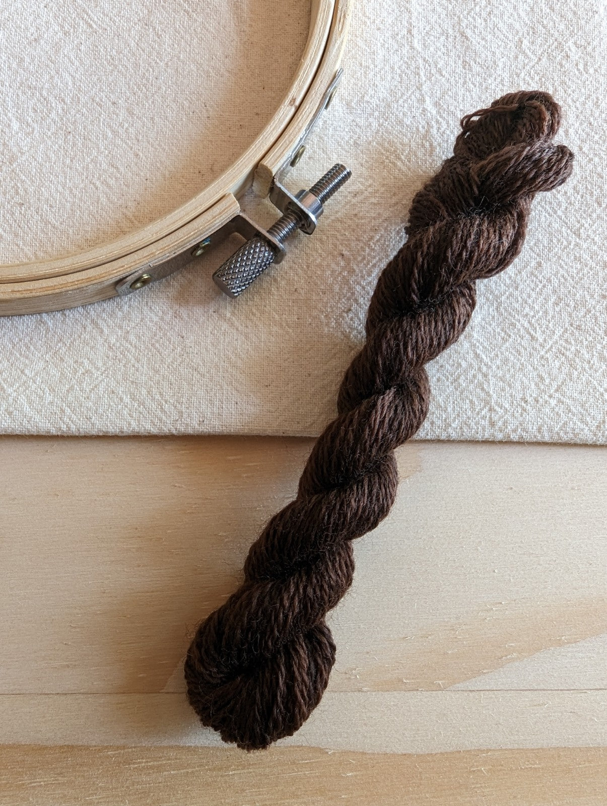 Ce fil à broder, très solide, est une laine d’agneau de très grande qualité peignée et filée dans le nord de l’Italie. Il est teint à la main avec des plantes, ici dans notre atelier de teinture en Isère. Il possède une brillance exceptionnelle pour un fil 100% laine.