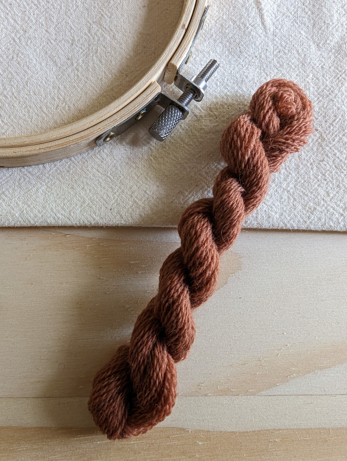 Ce fil à broder, très solide, est une laine d’agneau de très grande qualité peignée et filée dans le nord de l’Italie. Il est teint à la main avec des plantes, ici dans notre atelier de teinture en Isère. Il possède une brillance exceptionnelle pour un fil 100% laine.