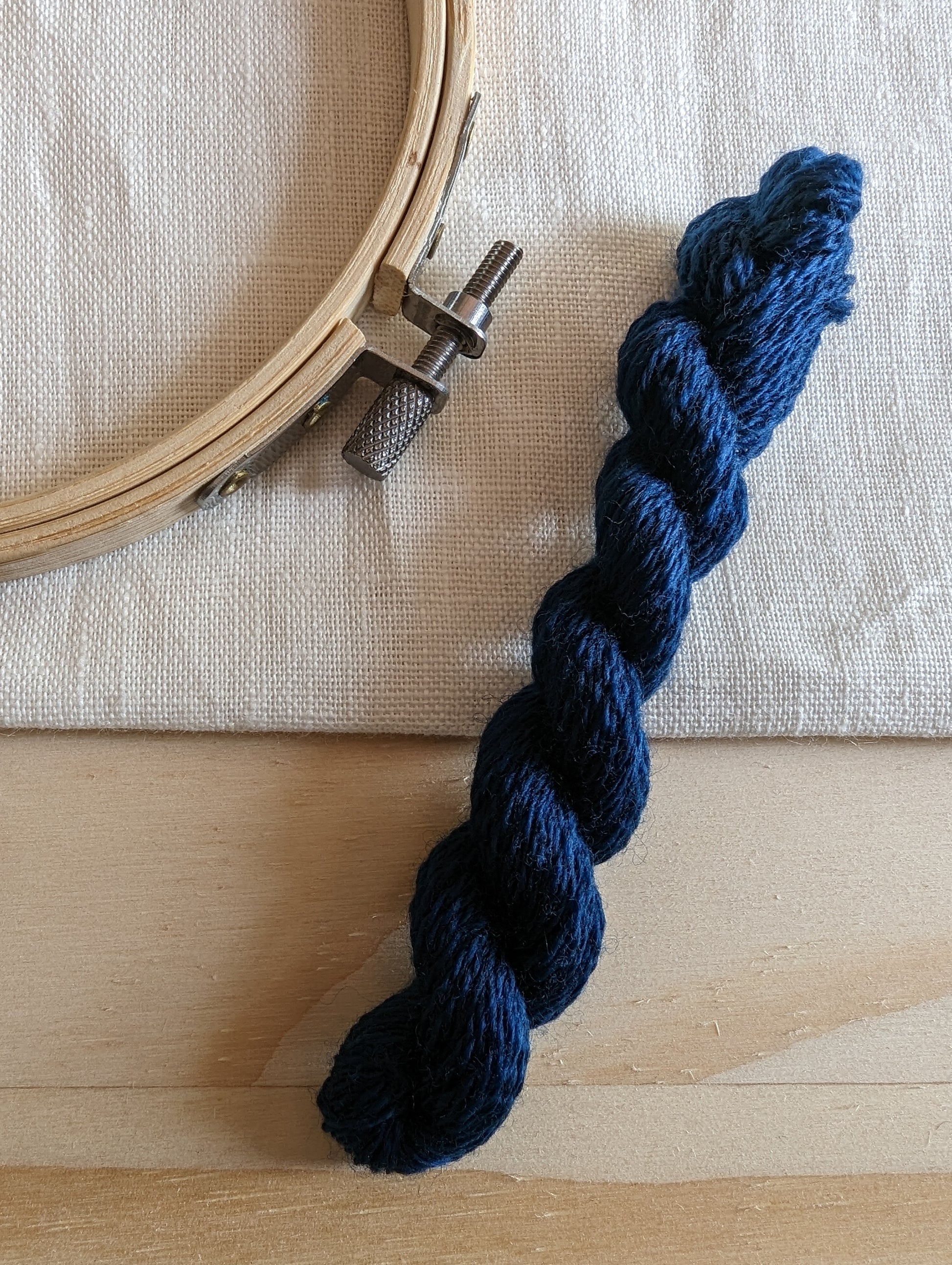 Ce fil à broder, très solide, est une laine d’agneau de très grande qualité peignée et filée dans le nord de l’Italie. Il est teint à la main avec des plantes, ici dans notre atelier de teinture en Isère. Il possède une brillance exceptionnelle pour un fil 100% laine.