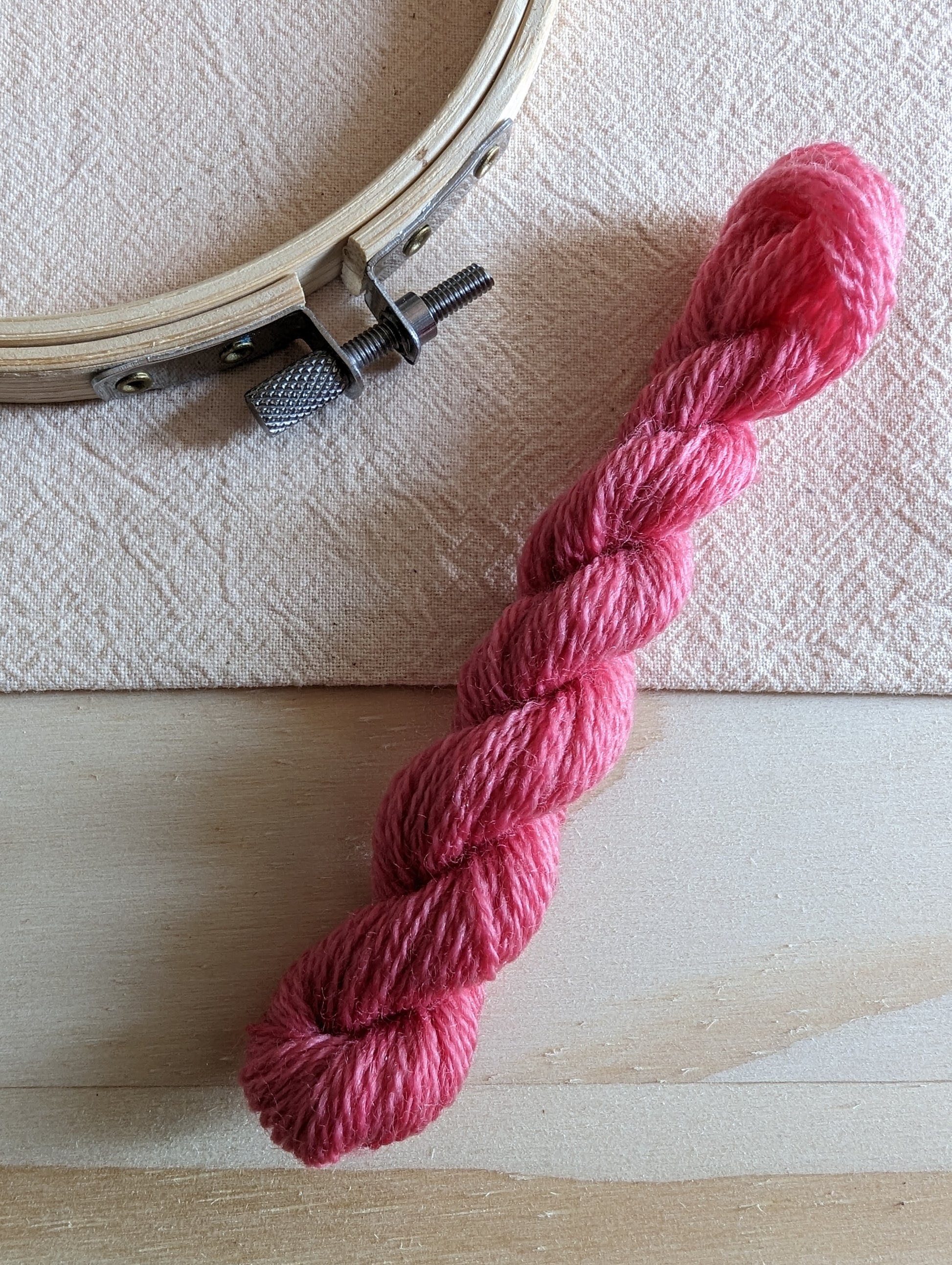 Ce fil à broder, très solide, est une laine d’agneau de très grande qualité peignée et filée dans le nord de l’Italie. Il est teint à la main avec des plantes, ici dans notre atelier de teinture en Isère. Il possède une brillance exceptionnelle pour un fil 100% laine.