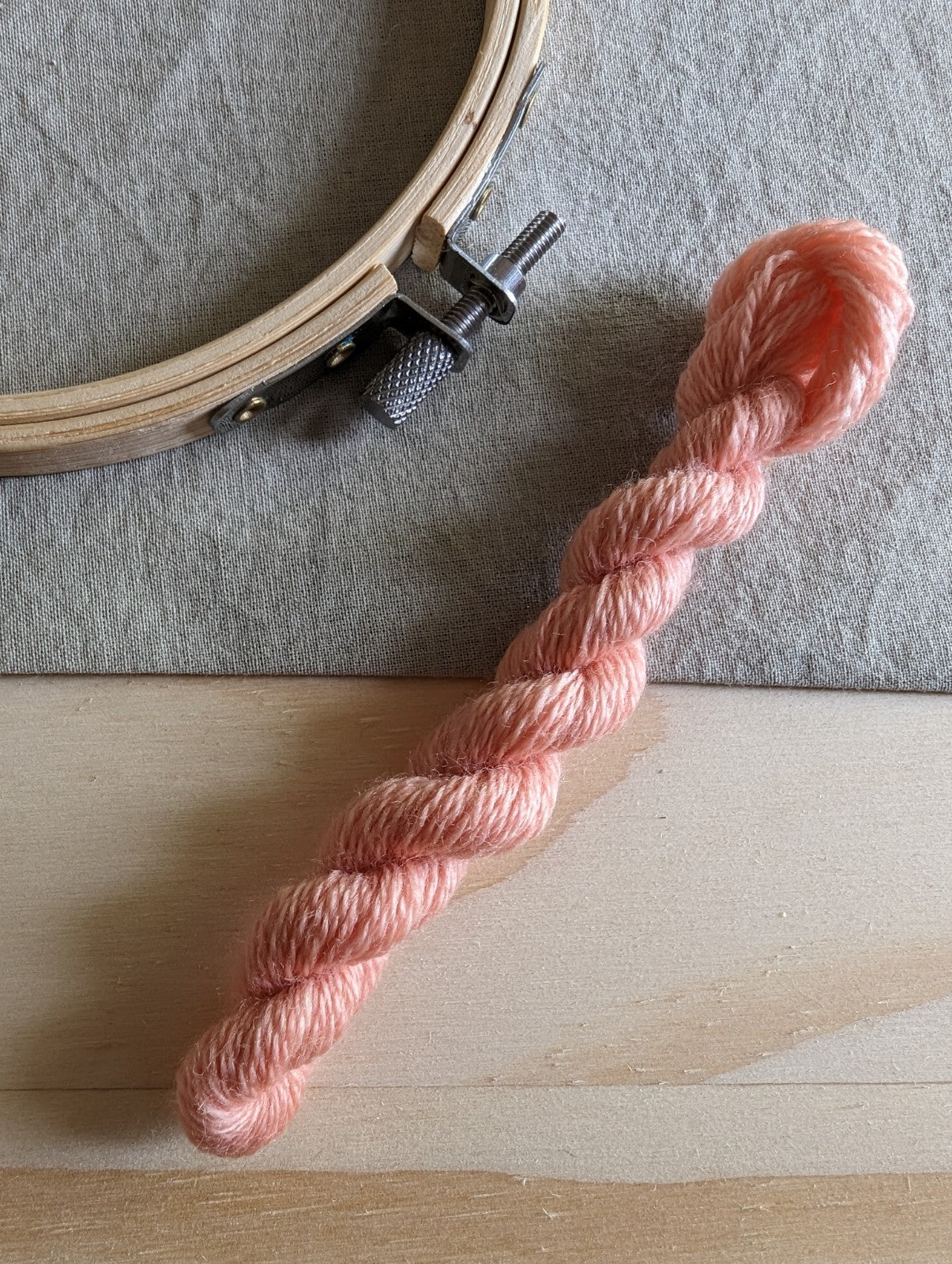 Ce fil à broder, très solide, est une laine d’agneau de très grande qualité peignée et filée dans le nord de l’Italie. Il est teint à la main avec des plantes, ici dans notre atelier de teinture en Isère. Il possède une brillance exceptionnelle pour un fil 100% laine.