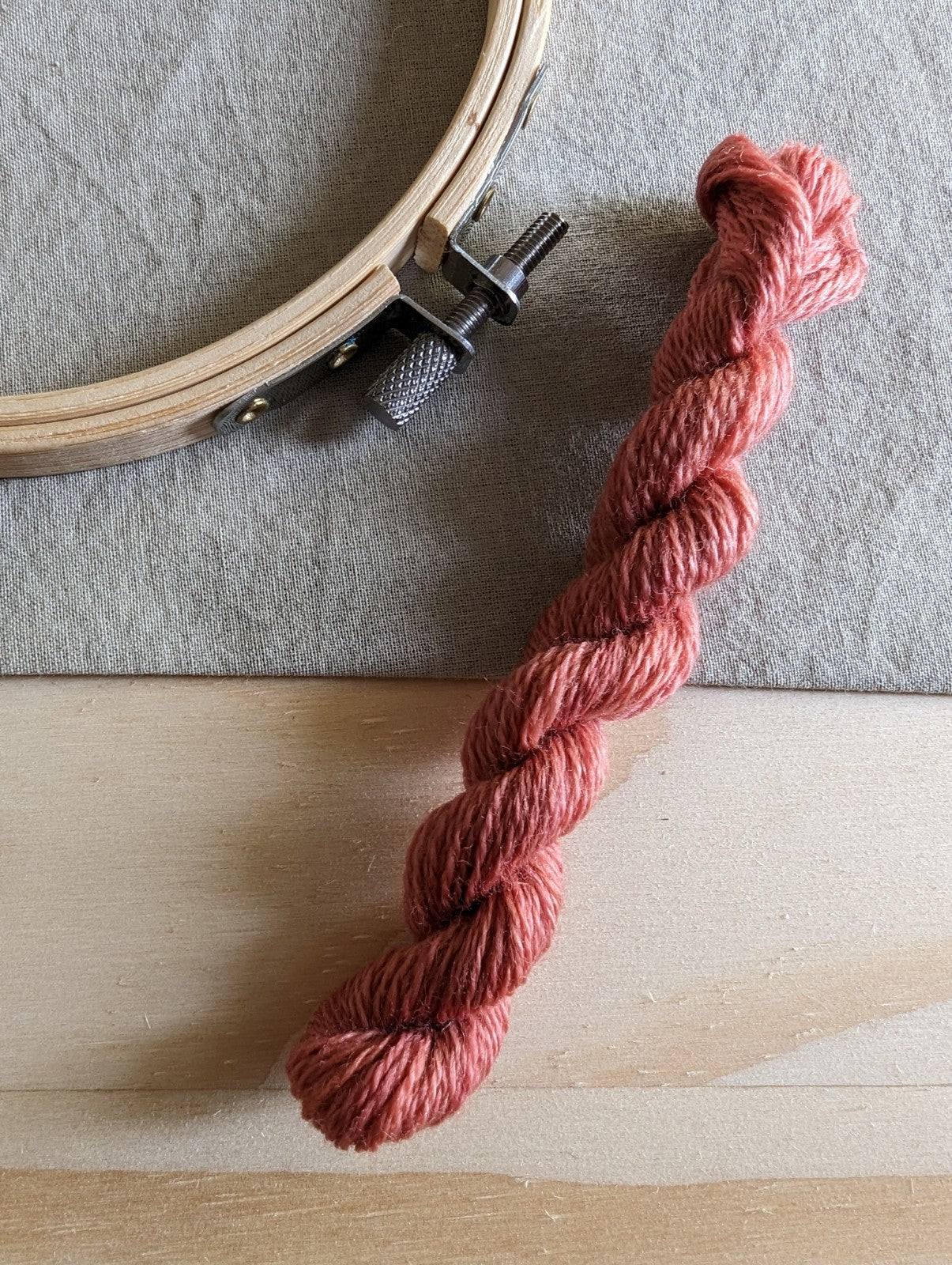 Ce fil à broder, très solide, est une laine d’agneau de très grande qualité peignée et filée dans le nord de l’Italie. Il est teint à la main avec des plantes, ici dans notre atelier de teinture en Isère. Il possède une brillance exceptionnelle pour un fil 100% laine.
