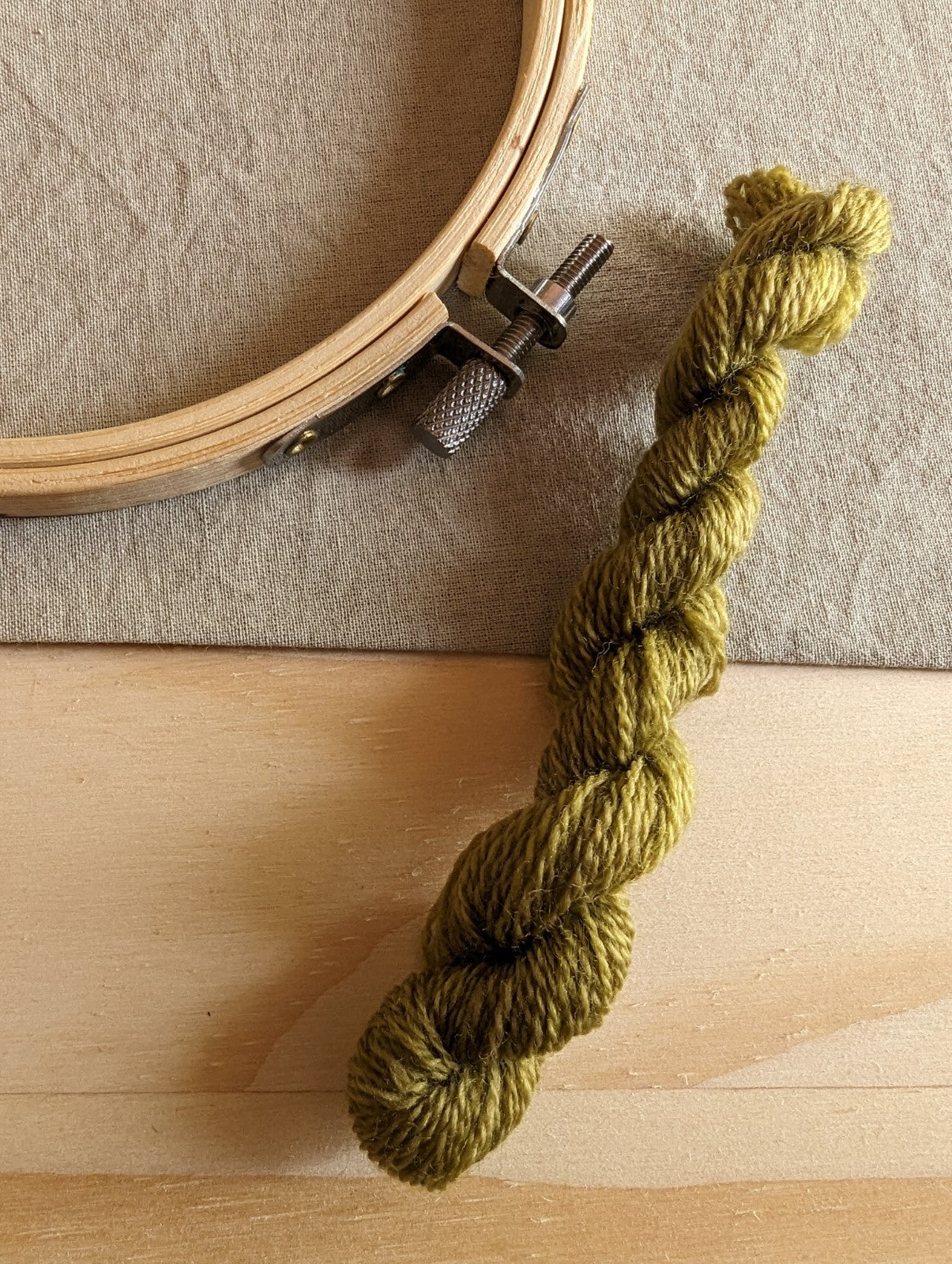 Ce fil à broder, très solide, est une laine d’agneau de très grande qualité peignée et filée dans le nord de l’Italie. Il est teint à la main avec des plantes, ici dans notre atelier de teinture en Isère. Il possède une brillance exceptionnelle pour un fil 100% laine.