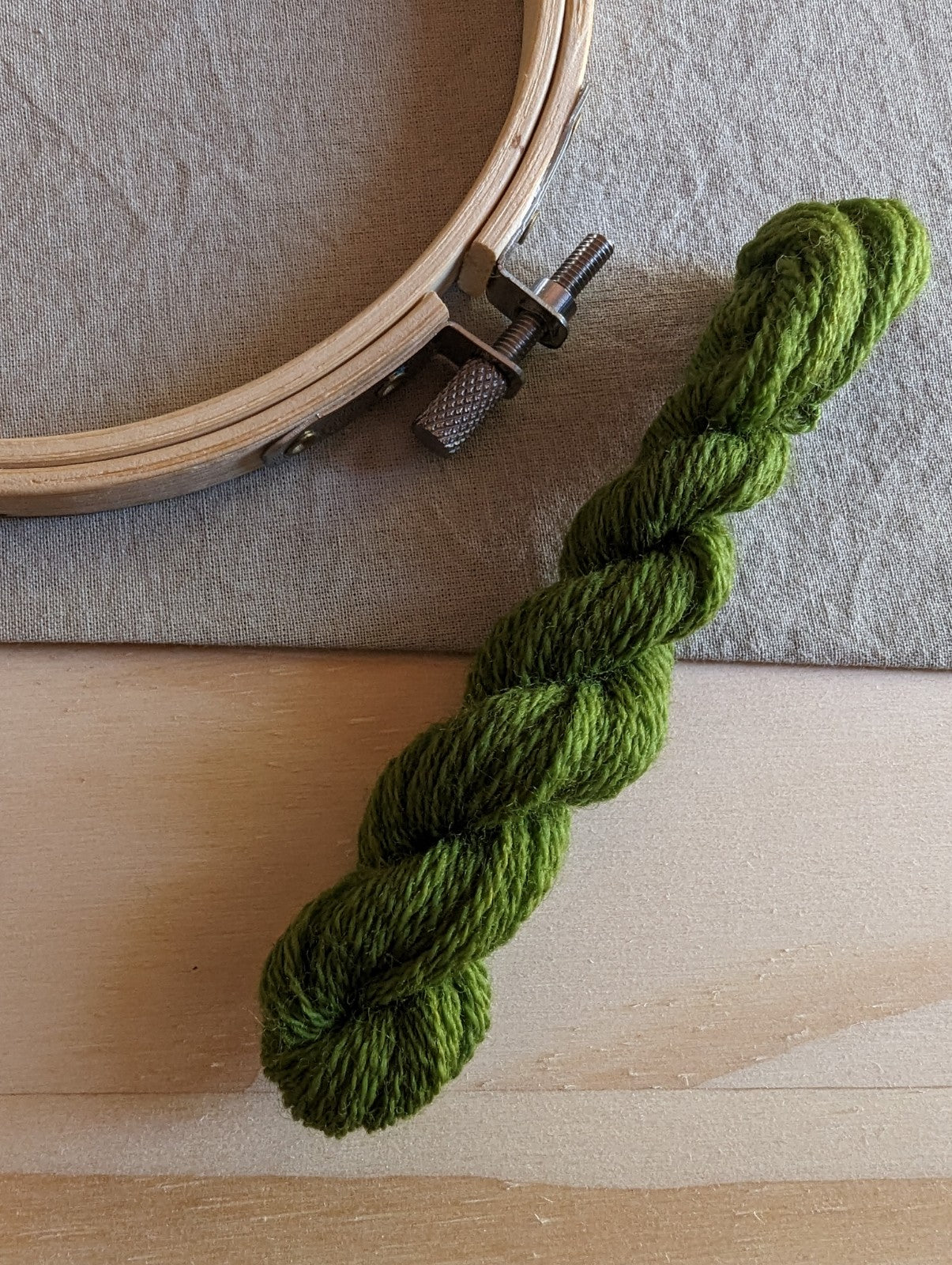 Ce fil à broder, très solide, est une laine d’agneau de très grande qualité peignée et filée dans le nord de l’Italie. Il est teint à la main avec des plantes, ici dans notre atelier de teinture en Isère. Il possède une brillance exceptionnelle pour un fil 100% laine.