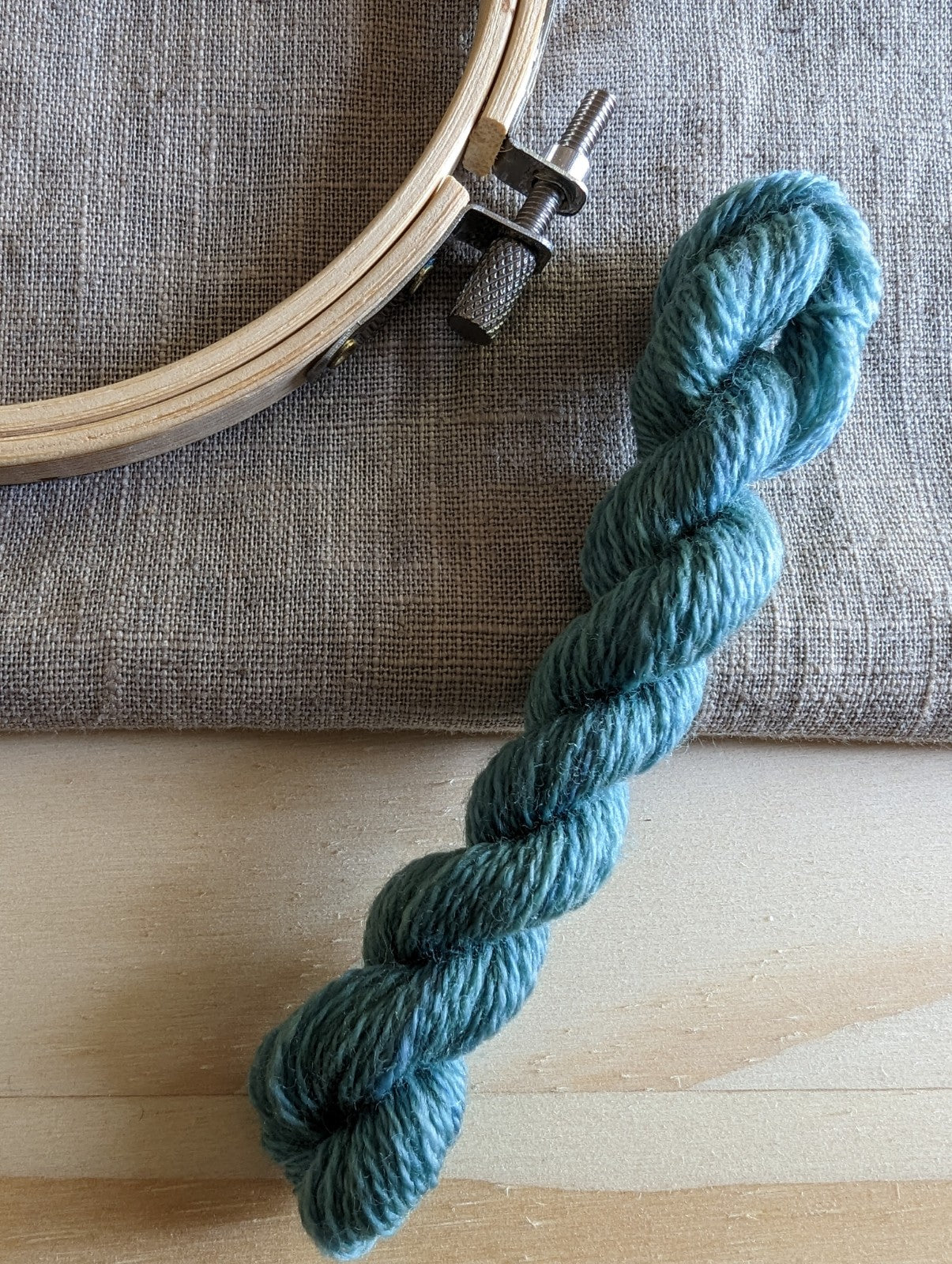 Ce fil à broder, très solide, est une laine d’agneau de très grande qualité peignée et filée dans le nord de l’Italie. Il est teint à la main avec des plantes, ici dans notre atelier de teinture en Isère. Il possède une brillance exceptionnelle pour un fil 100% laine.
