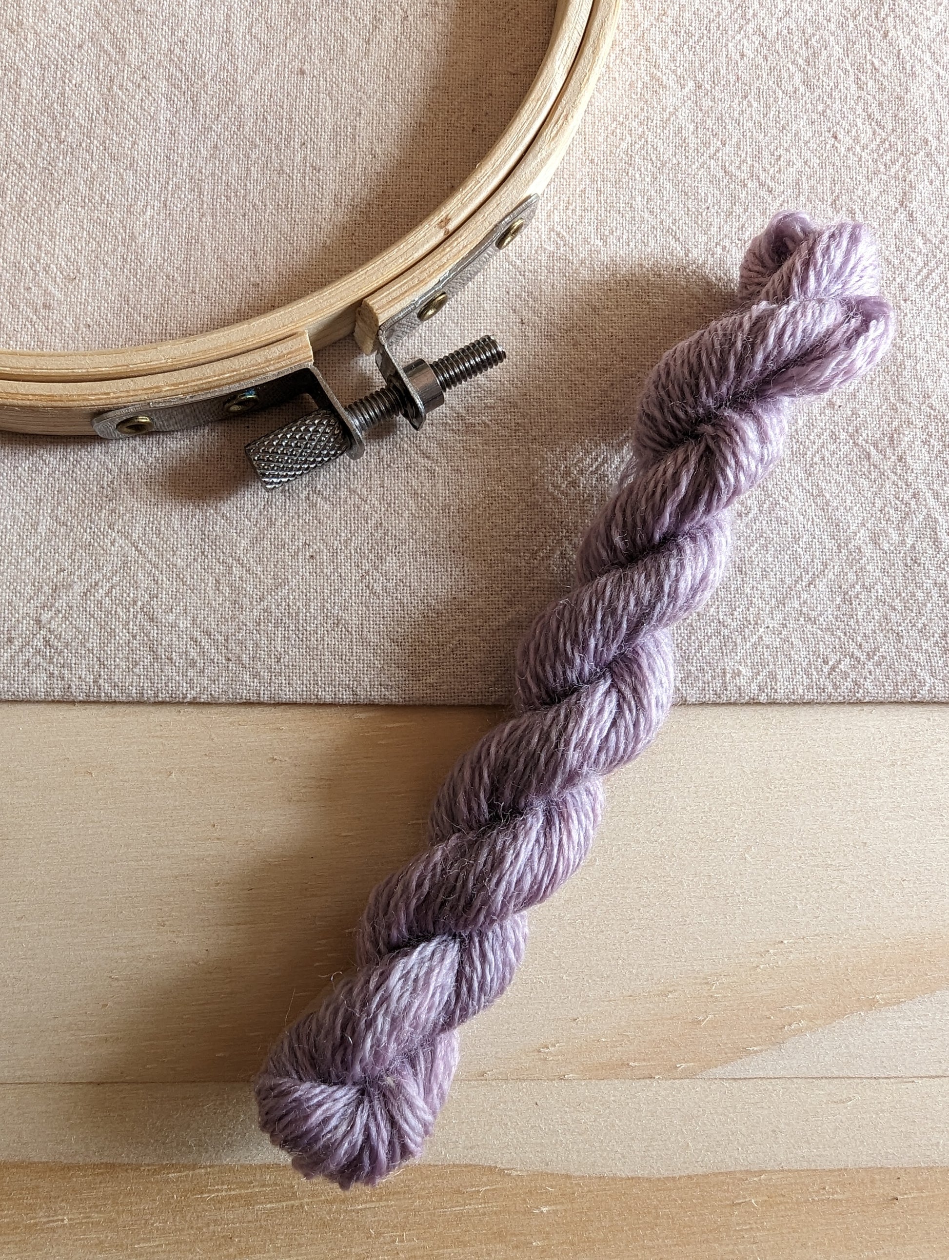 Ce fil à broder, très solide, est une laine d’agneau de très grande qualité peignée et filée dans le nord de l’Italie. Il est teint à la main avec des plantes, ici dans notre atelier de teinture en Isère. Il possède une brillance exceptionnelle pour un fil 100% laine.
