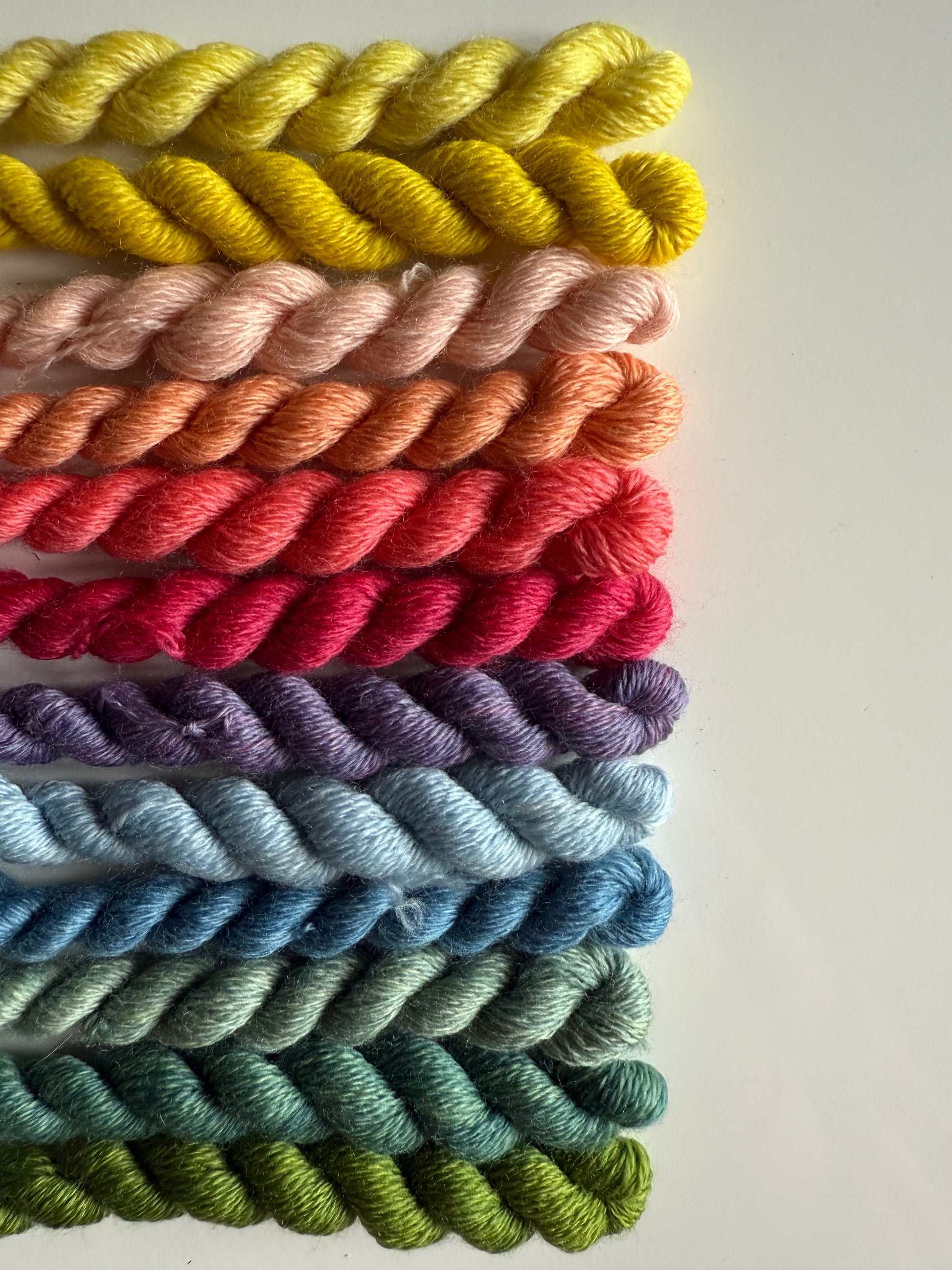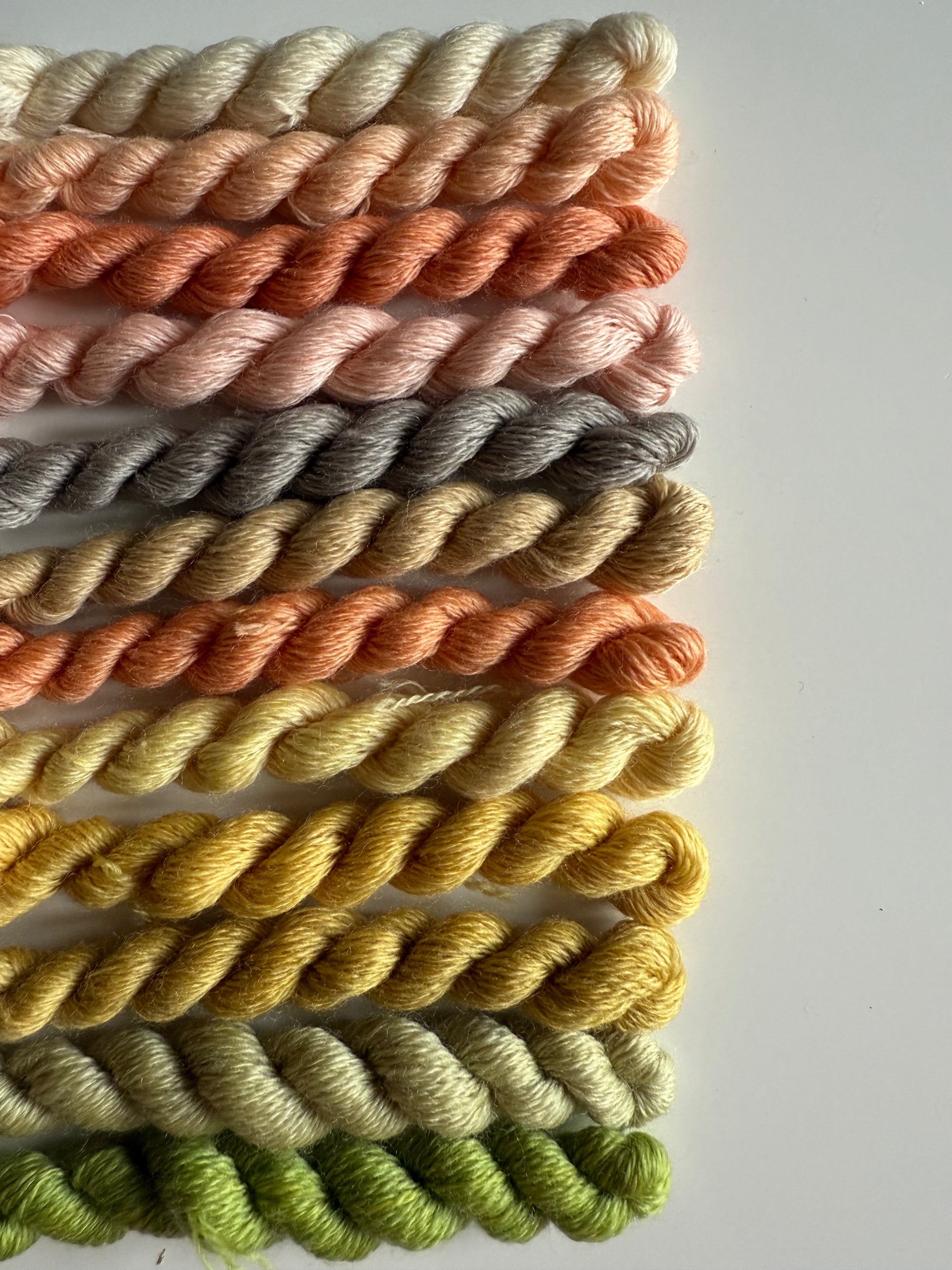 Ce fil à broder, très solide, est une laine d’agneau de très grande qualité peignée et filée dans le nord de l’Italie et teint à la main avec des plantes, ici dans notre atelier de teinture en Isère. Il possède une brillance exceptionnelle pour un fil 100% laine.
