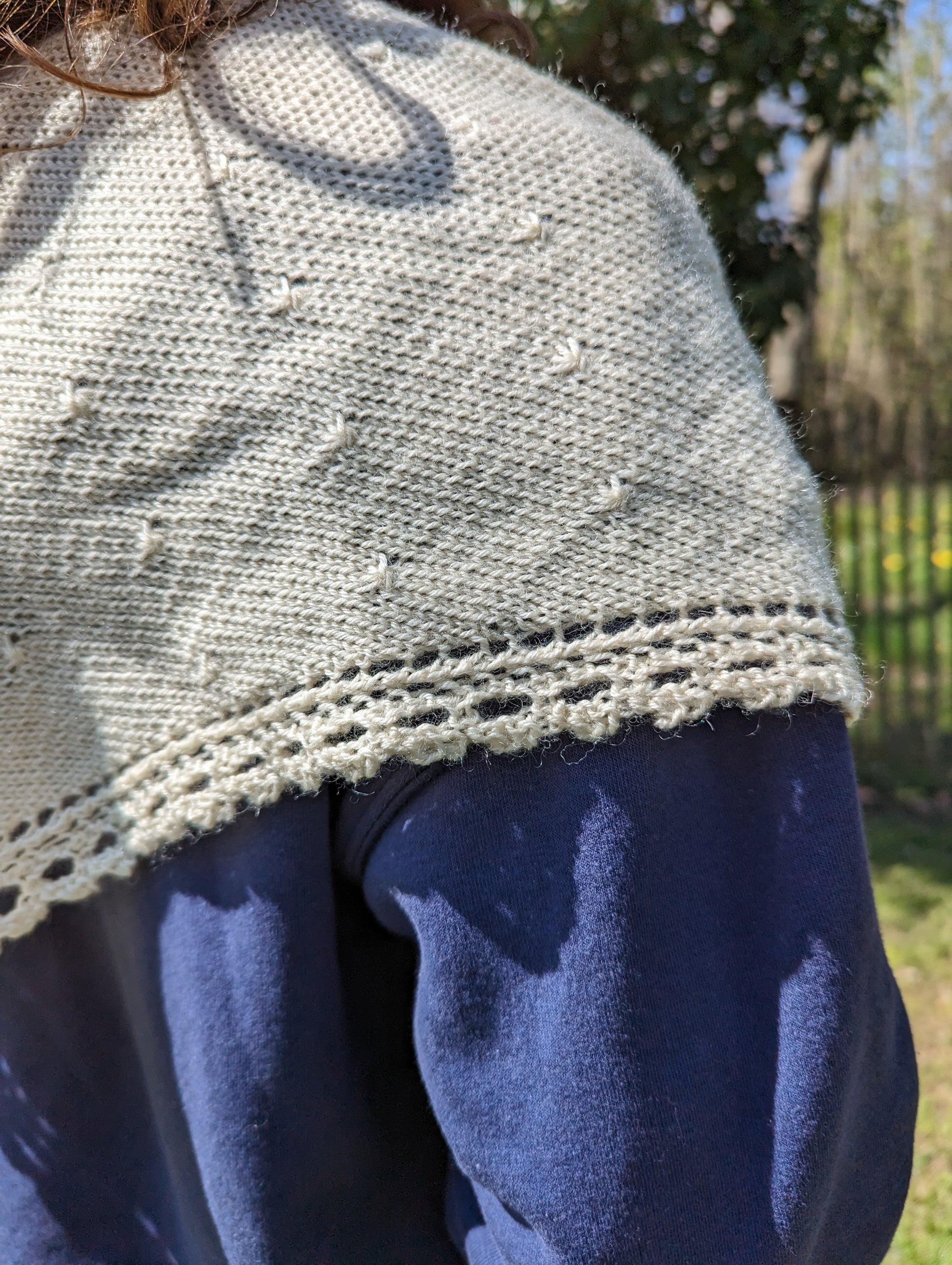 Ce châle se tricote avec des aiguilles de 3,5mm / US4, 80 cm.